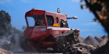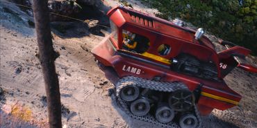 The Land Auxiliary Motorized Booster (LAMB) is an all-terrain vehicle launched from the Hay Ewe. The Hay Ewe's fuselage can remain hovering in the air while the LAMB deploys for ground-based exploration.